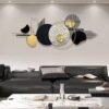 Modern wall art with bold shapes and metallic contrast.